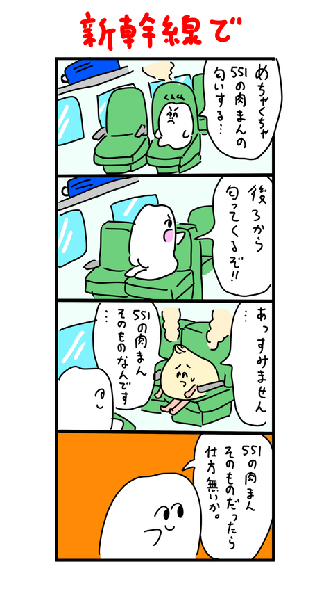 肉まん食べてると思ったら 2023年04月12日 新幹線の車内で肉まん食べてる人がいると思ったら肉まんそのものでした。↓良かったらポチッと押してもらえるとやる気が出ます。 ... 続きを読む 新幹線の車内で肉まん食べてる人がいると思ったら肉まんそのものでした。↓良かったらポチッと押してもらえるとやる気が出ます。
